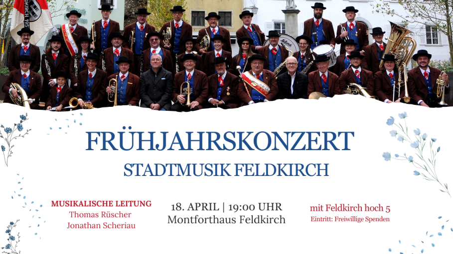 Unter neuer musikalischer Führung präsentierte sich die Stadtmusik Feldkirch am Samstag, den 5. April 2025 im Montforthaus Feldkirch.